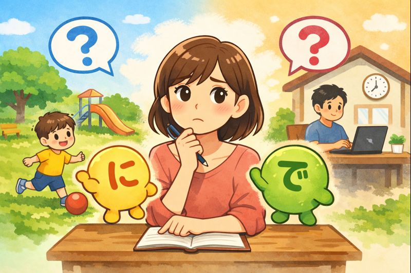 この記事では、「に」と「で」を正解・不正解で分けるのではなく、どう考えると選びやすくなるかを整理します。