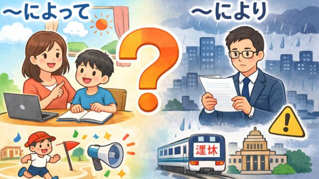 この記事では、「〜により」と「〜による」の違いを、日常の例を交えながらやさしく整理していきます。読み終えるころには、「こう考えればいいのか」とすっきり理解できるはずです。